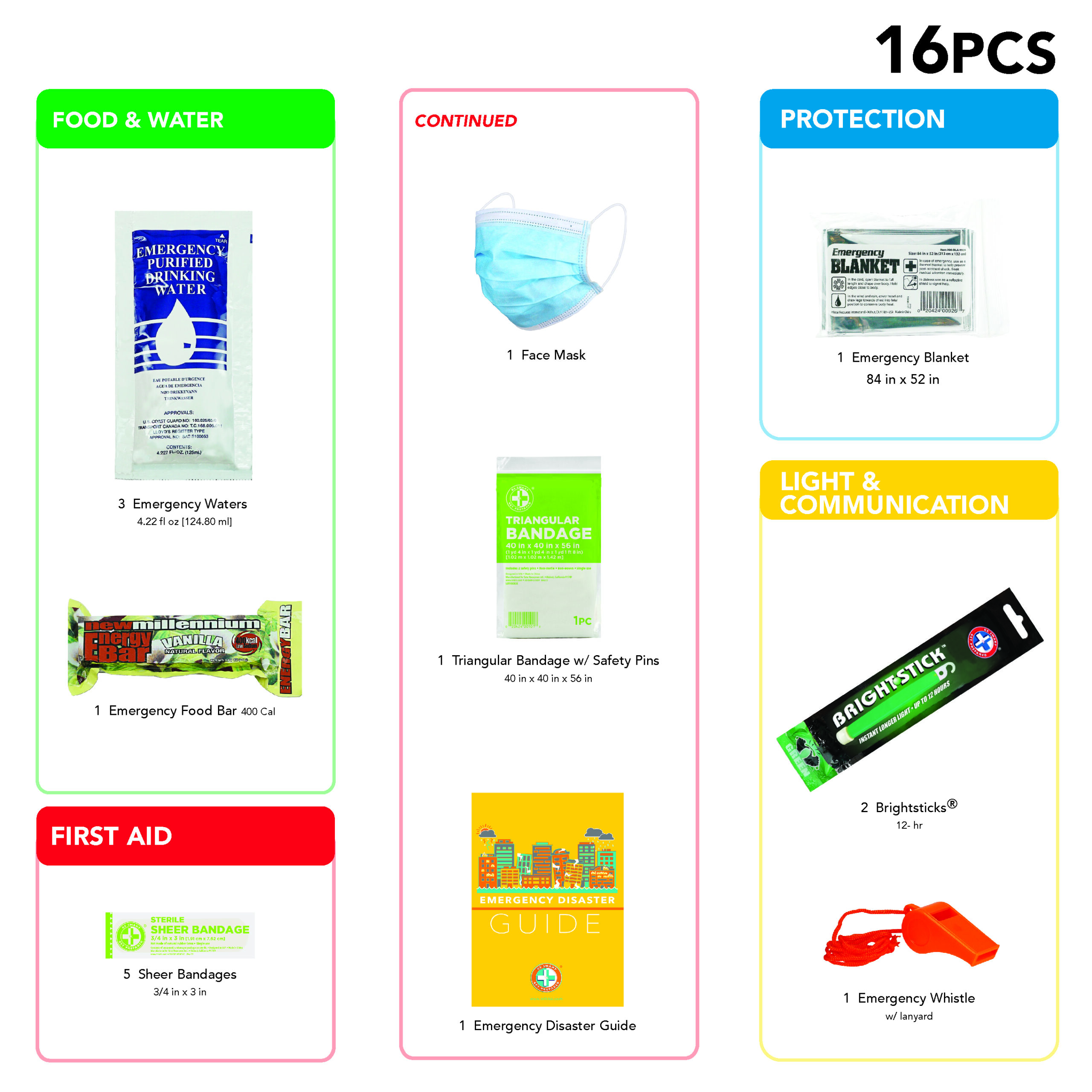 Earthquakes can happen even in the office. Make sure you’re prepared no matter the environment, our office earthquake kit will ensure you have all the resources you need. Includes food, water, protection, light, and a blanket and whistle. U.S Coast Guard approved water and food. Packaged in a heavy duty, plastic ziploc bag.
